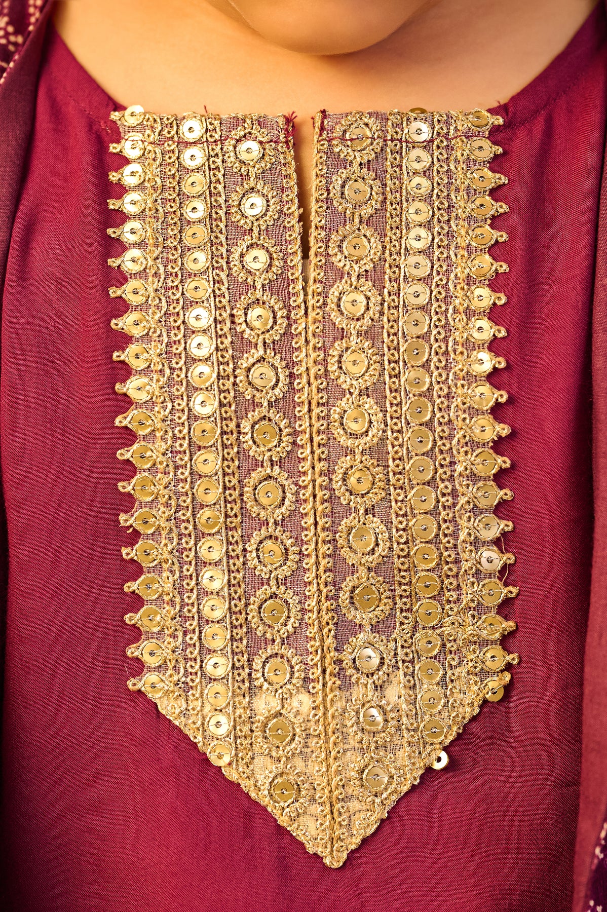 GIRLS PURPLE MUSLIN KURTI PANT WITH SHORT JACKET AND DUPATTA (SET OF 3)
